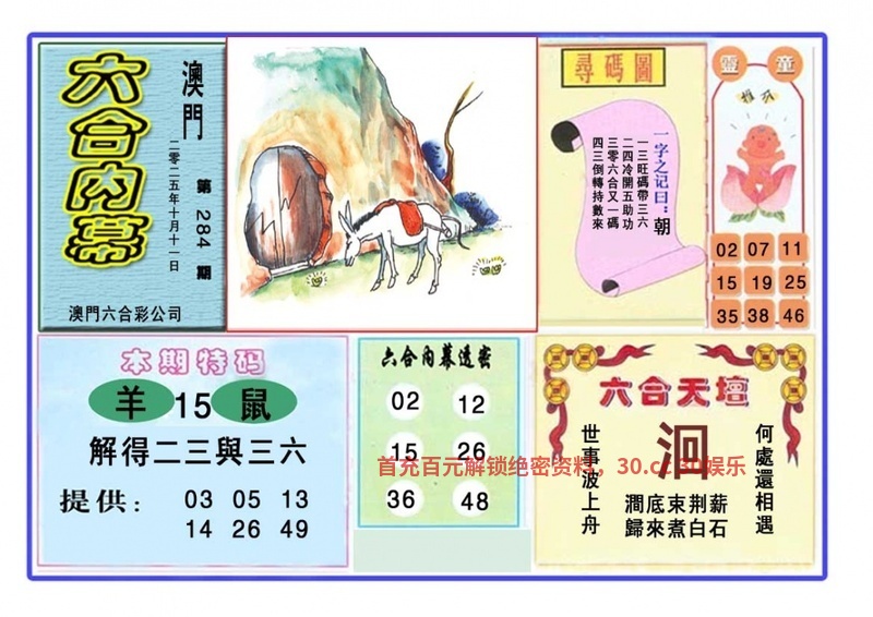 286期:密门仙机/心水特码信/黄大仙天书/波色生肖诗/生肖歇后语